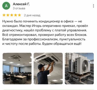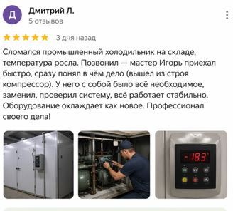 Частный мастер. Приезжаю сам. Ремонтирую сплит-системы, витрины, шкафы и камеры. По фото, ошибке или видео сразу скажу, на что это похоже.